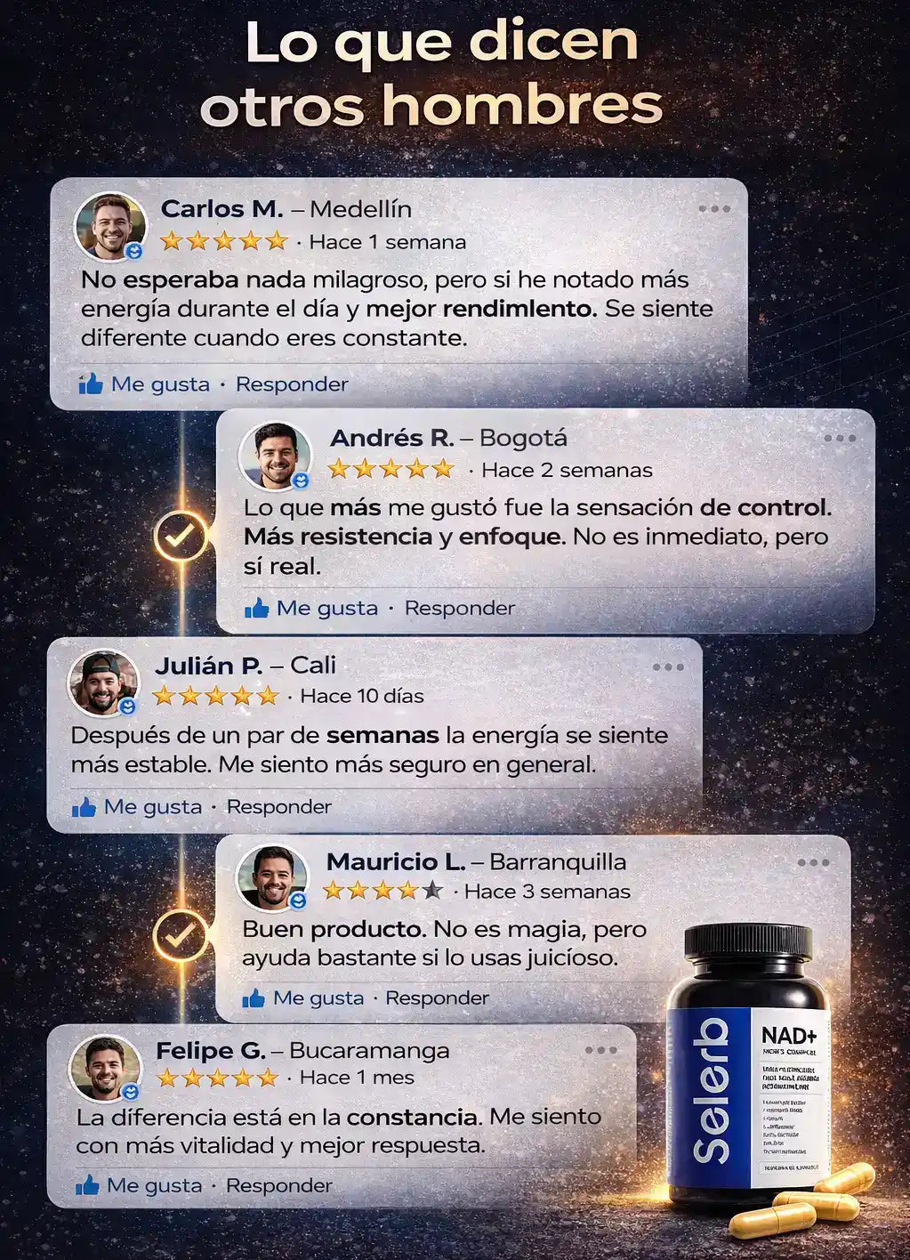👉 Muchos hombres sienten más energía y mejor respuesta en los primeros días, mientras que en pocas semanas el rendimiento se vuelve más estable y confiable.